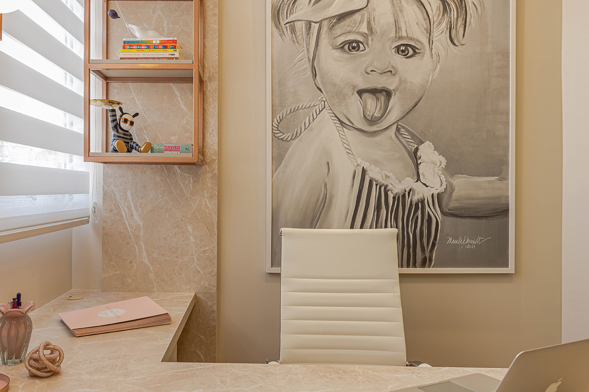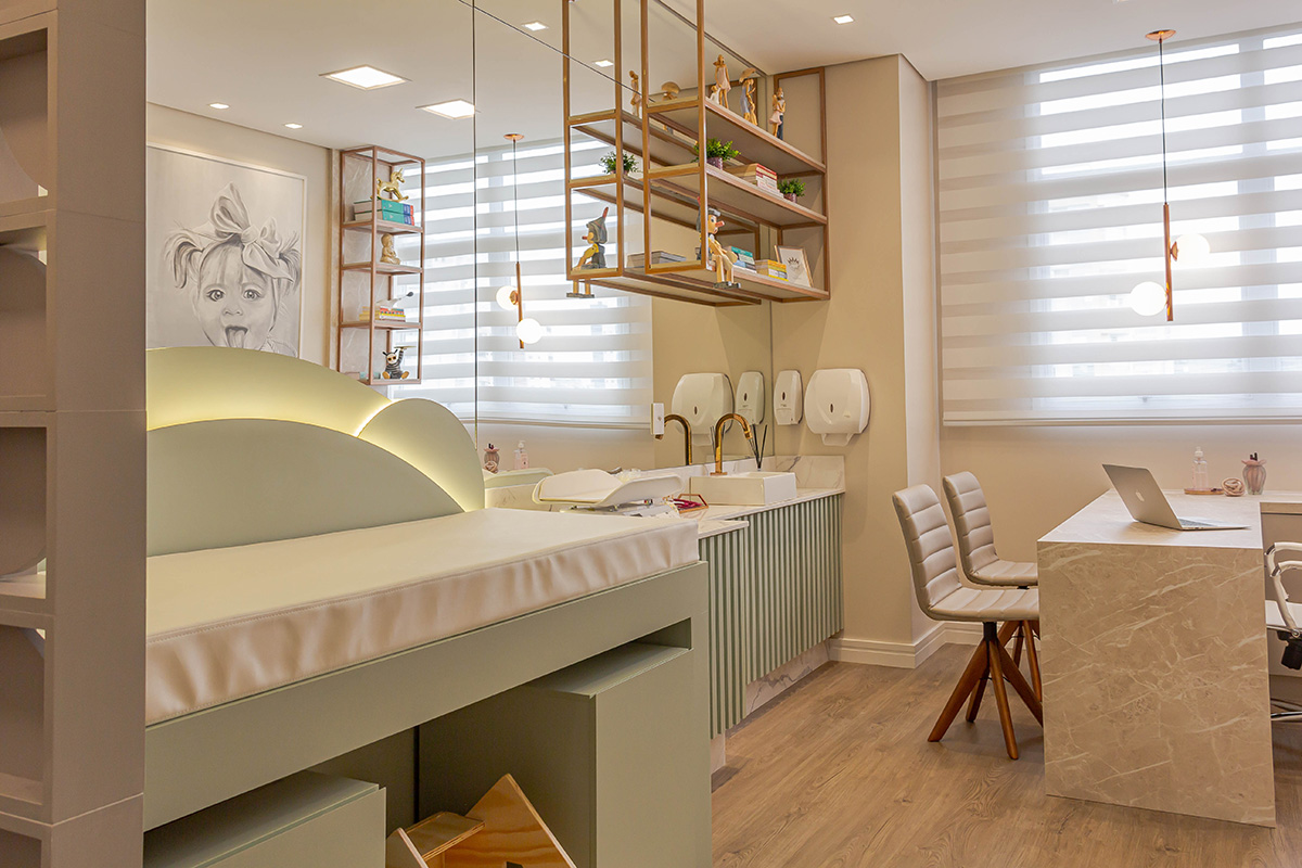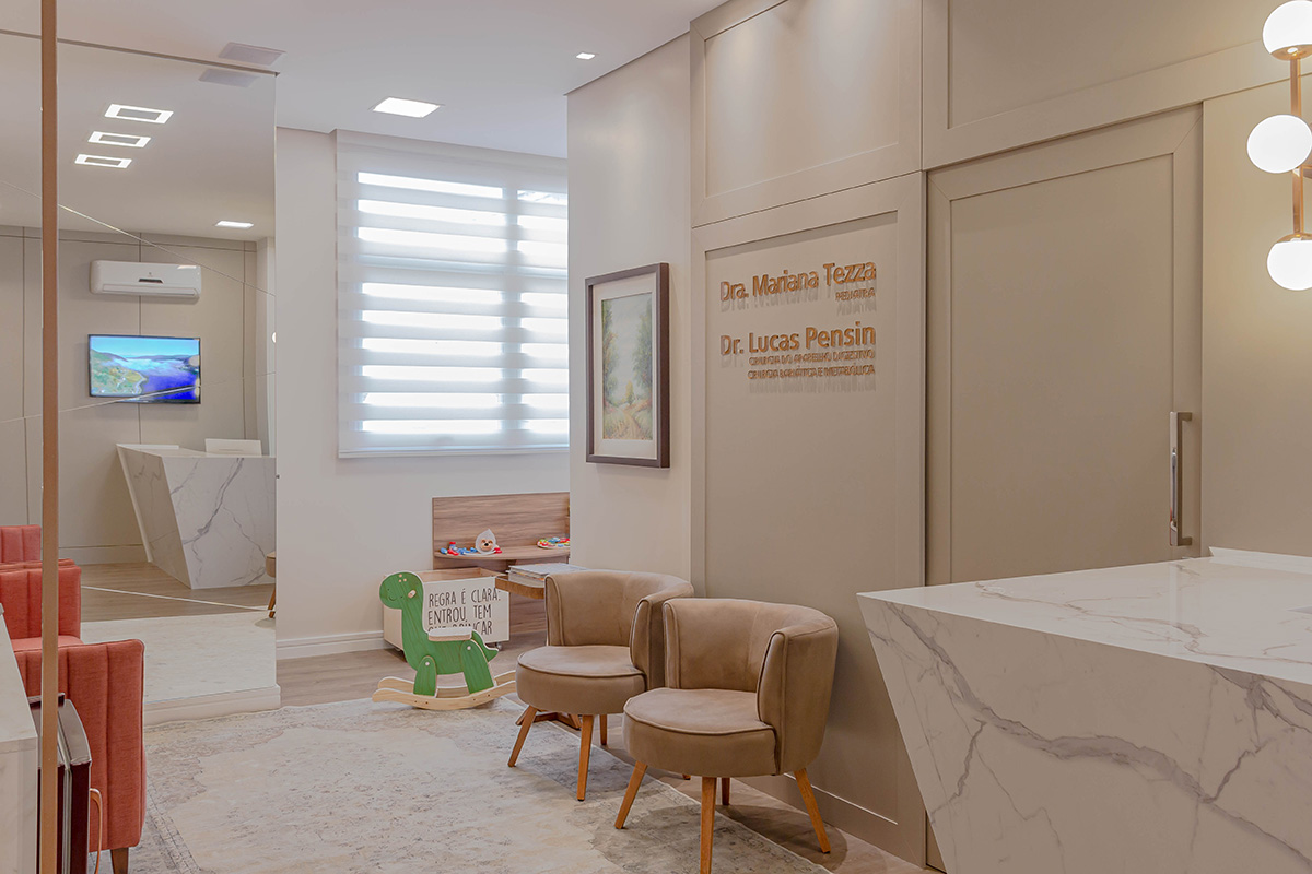 O espaço do consultório foi projetado para ser aconchegante, tranquilo e cheio de artifícios para entreter e deixar as crianças bem à vontade - o suficiente para desejarem ficar!
